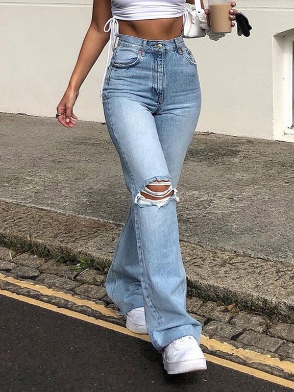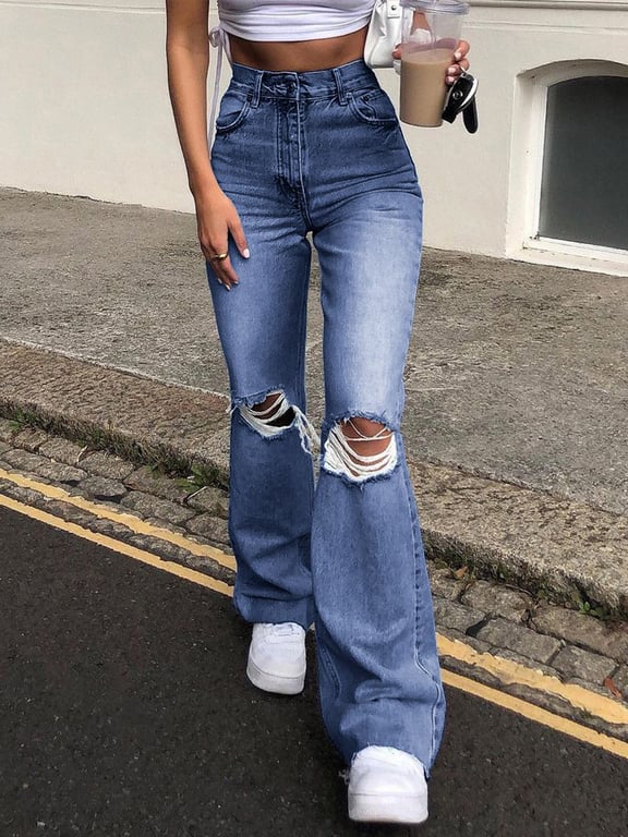Women's Trendy Ripped Flared Jeans with High Waist