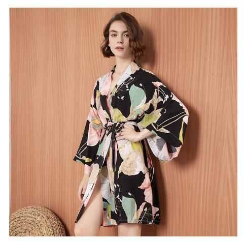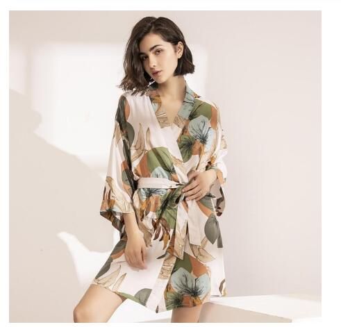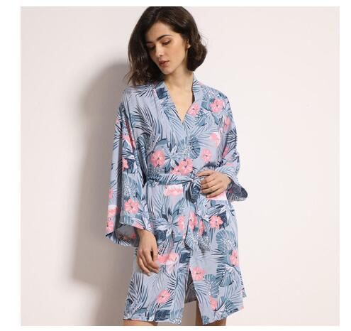 Luxurious trendy women's robe with a floral pattern.