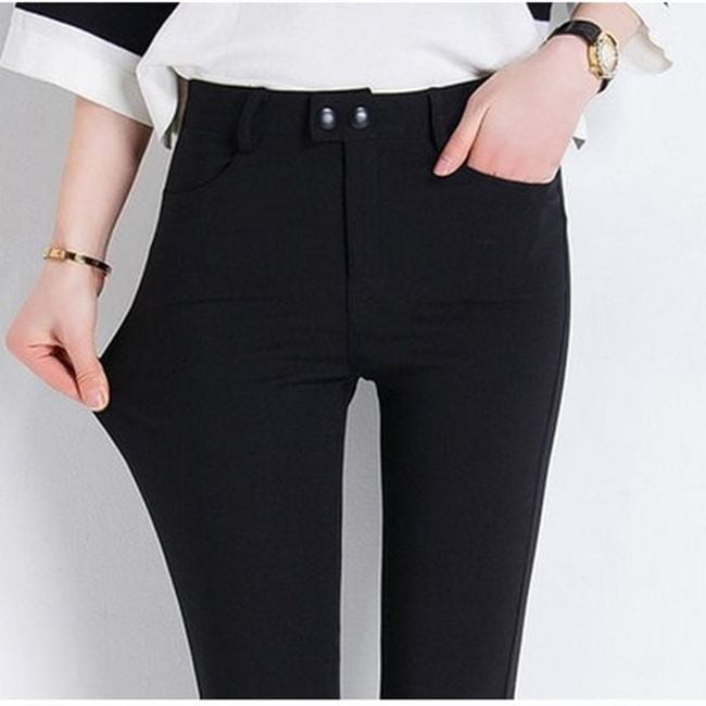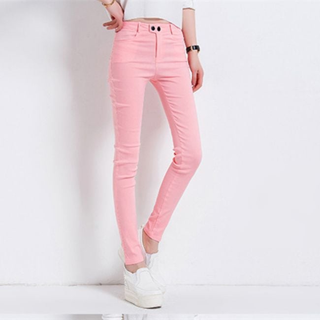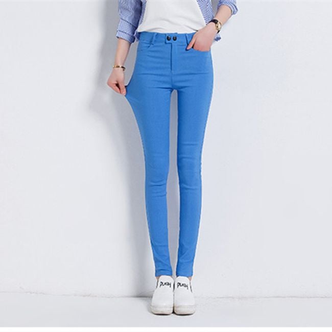 Women's slim-fit trousers will serve as a colourful and stylish outfit.