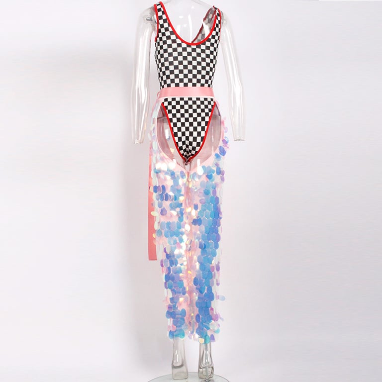 Women's trousers with an open crotch.