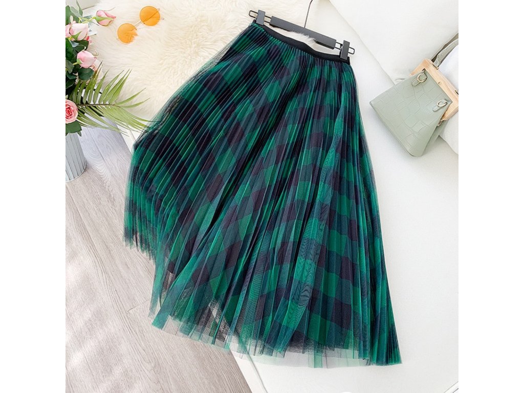 Women's tulle skirt with a checked pattern