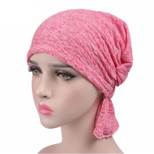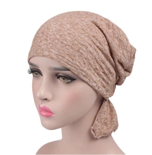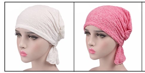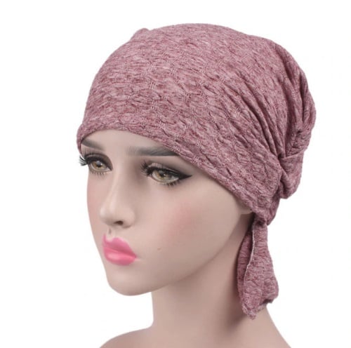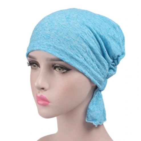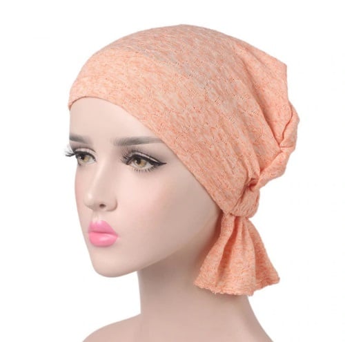 Women's lace cap that looks like a turban.
