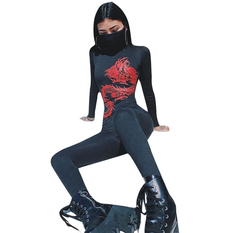 Women's Turtleneck Jumpsuit with Dragon Print