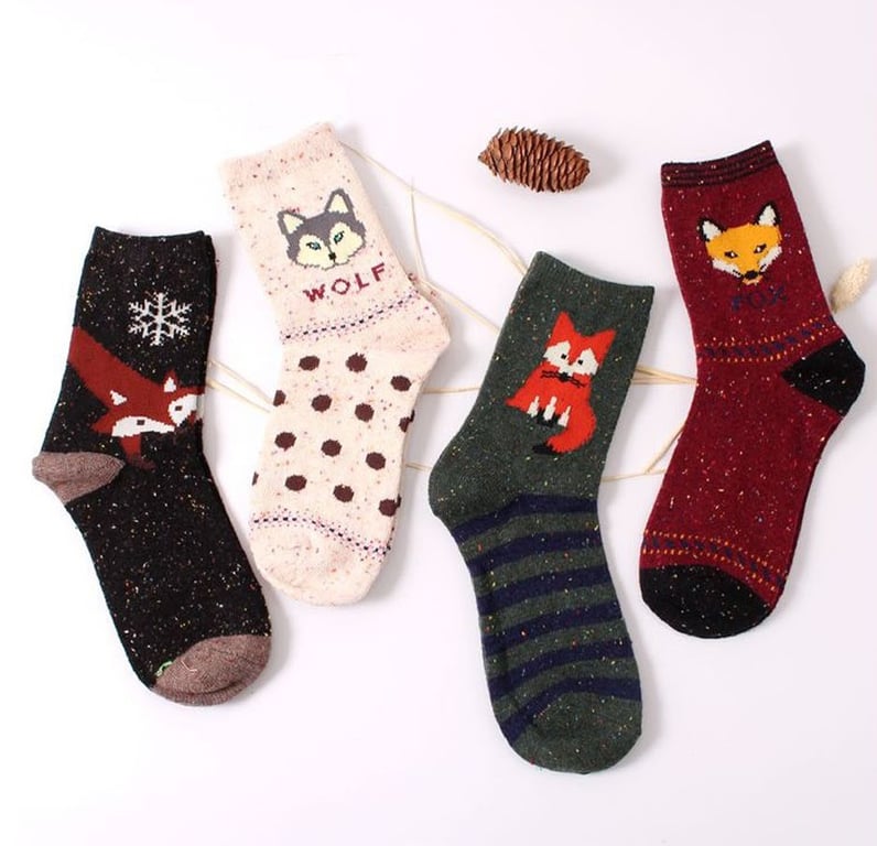 You will love these cosy socks featuring a fox and a wolf.