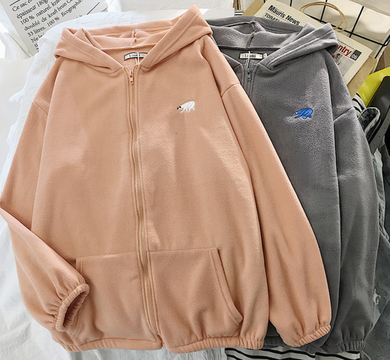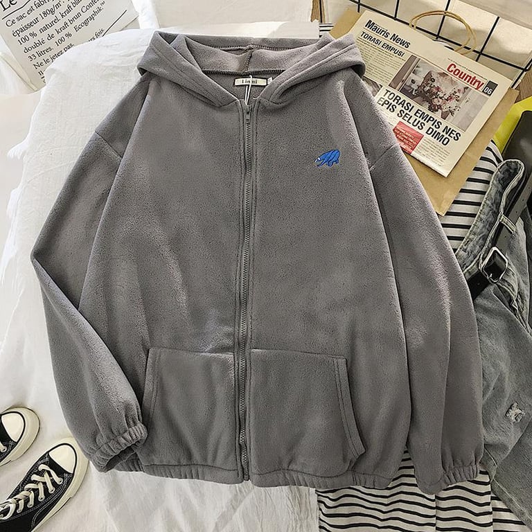 • With long sleeves, a hood, zip fastening, two pockets, and a small embroidery.