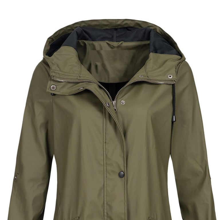 Women's waterproof coloured jacket. Windproof. With a hood and drawstrings for tightening. Zip fastening and poppers. Two side pockets. Available in several colour options.