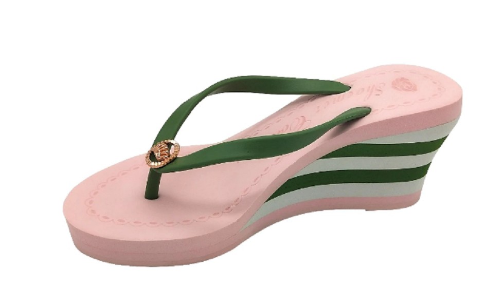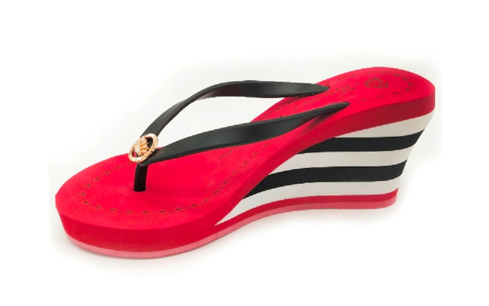 The flip-flops have a wedge heel, making them very comfortable.