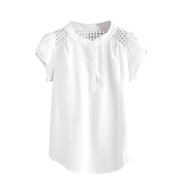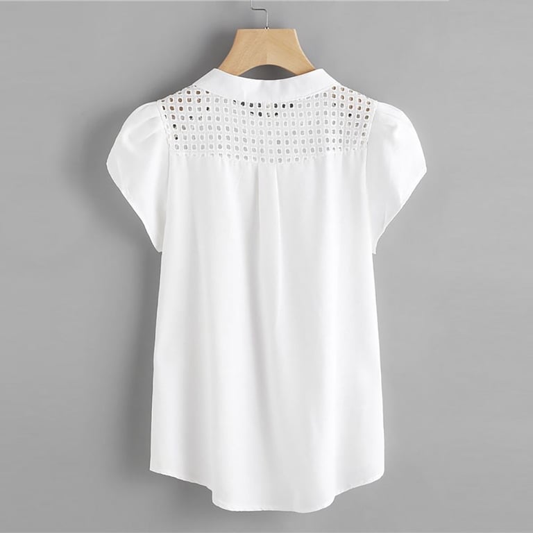 A classic white blouse with short sleeves and buttons.