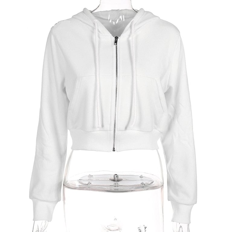 Women's White Crop Hoodie
