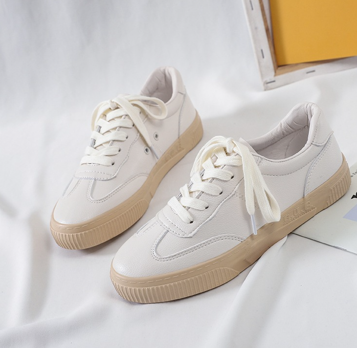 Women's white faux leather trainers