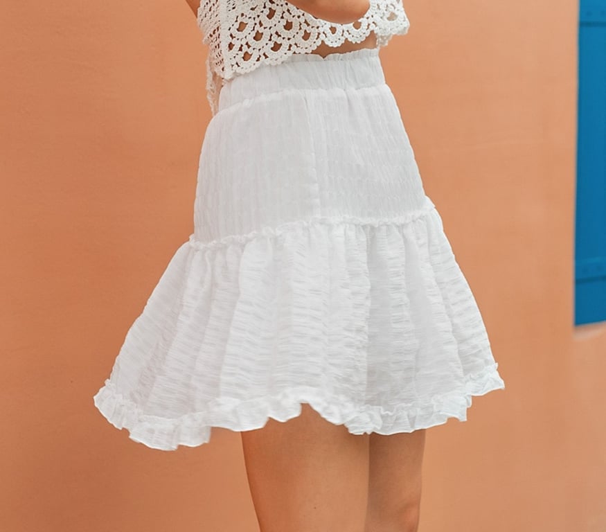 Women's White Mini Skirt with Ruching