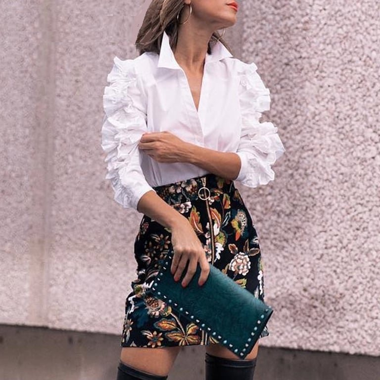Women's White Blouse with Ruffles