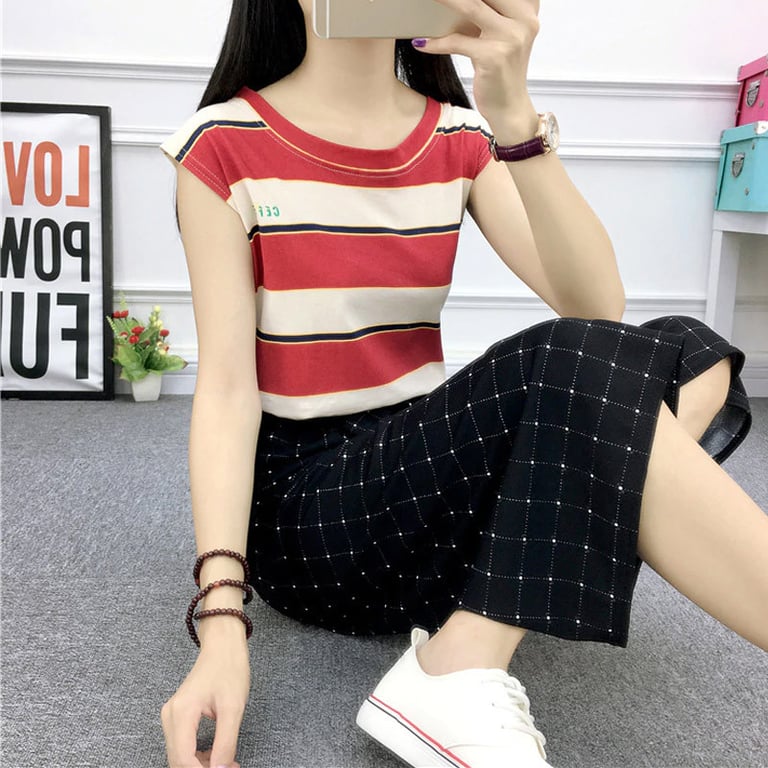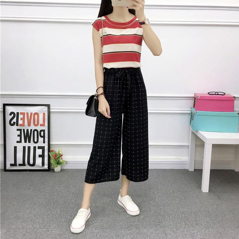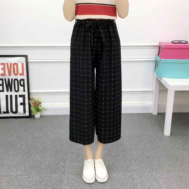 Women's high-waisted capri trousers. Three-quarter length and loose wide fit. The trousers feature a tie waist. Available in several variations.
