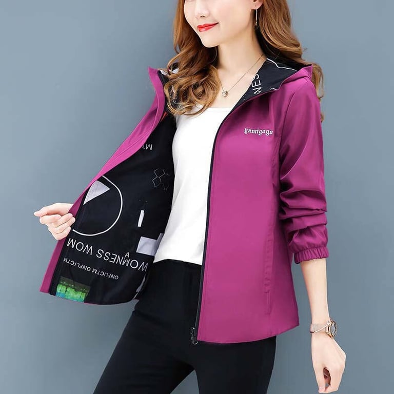 Women's lightweight hooded jacket. Reversible. With a zip fastening. Waterproof and windproof. Available in multiple colour options.
