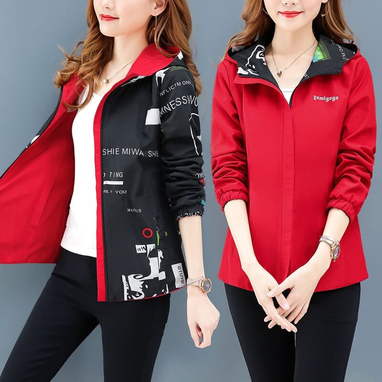 Women's lightweight hooded jacket. Reversible. With a zip fastening. Waterproof and windproof. Available in multiple colour options.
