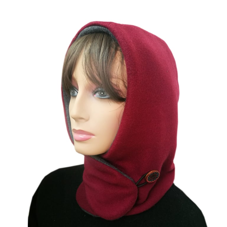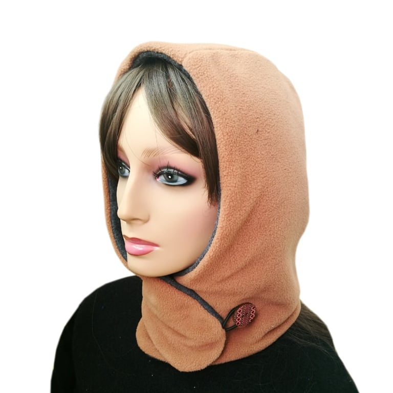 Women's winter balaclava with a neck fastening.