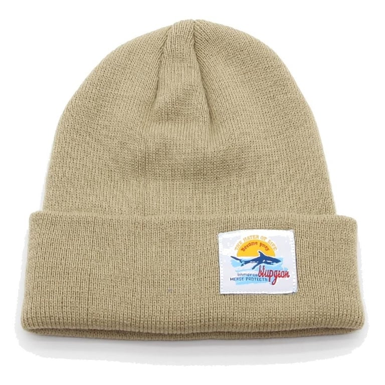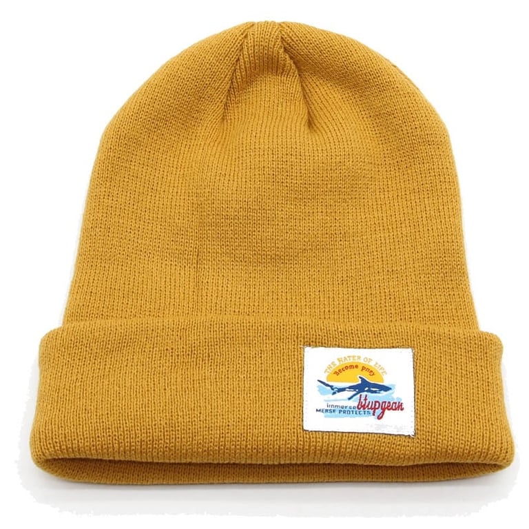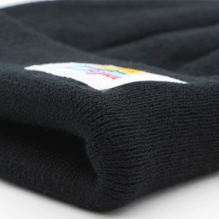 Solid colour women's beanie with a patch.