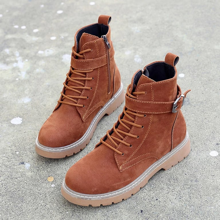 Women's winter boots with a leather-like appearance and lacing. The boots feature a zip fastening and are adorned with a buckle at the ankle. Available in several colour options.