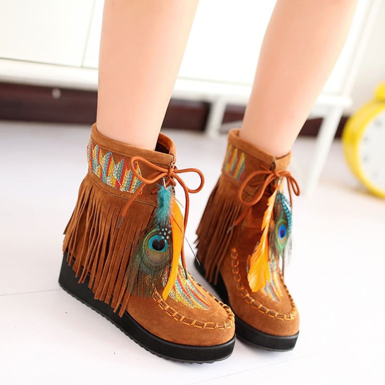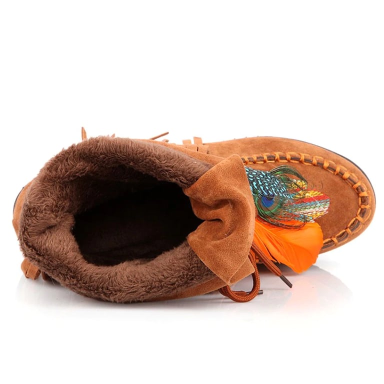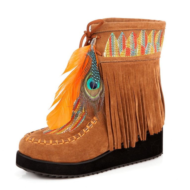 Retro is back in fashion and you can be retro with these Indian boots with feathers.