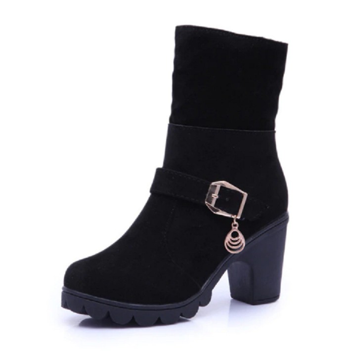 You will love the winter heeled boots with a buckle. The shoes are made from high-quality materials.