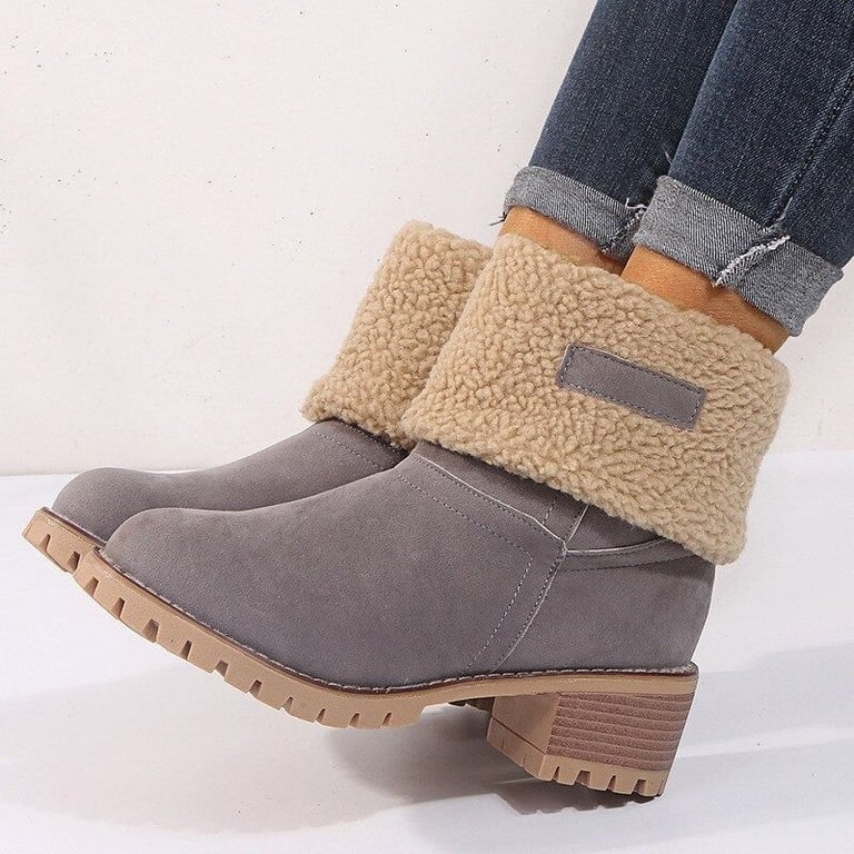 Women's Winter Ankle Boots with Plush on Block Heels Skylar