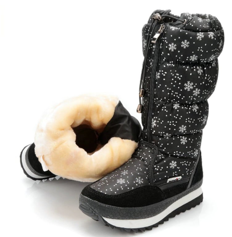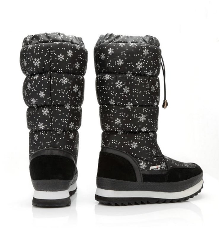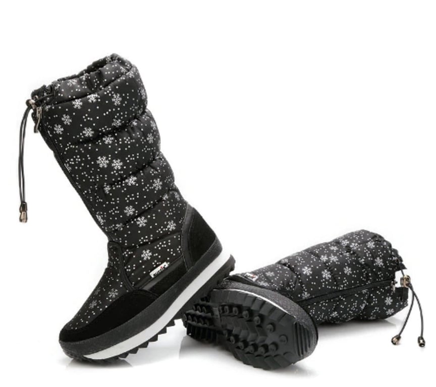Women's winter boots with snowflakes are the ideal footwear for the mountains.
