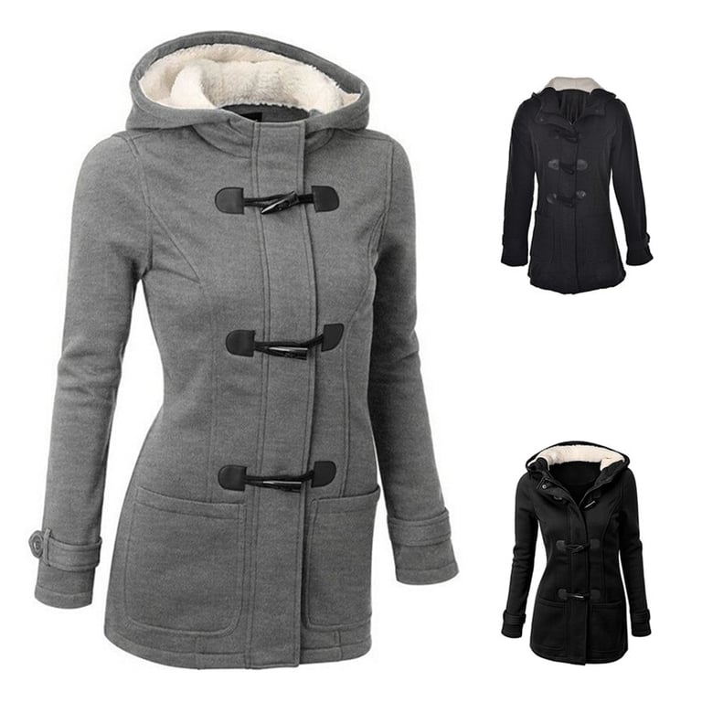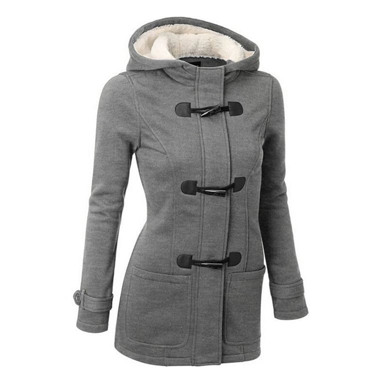 Women's Winter Casual Zip Coat with Buttons and Hood