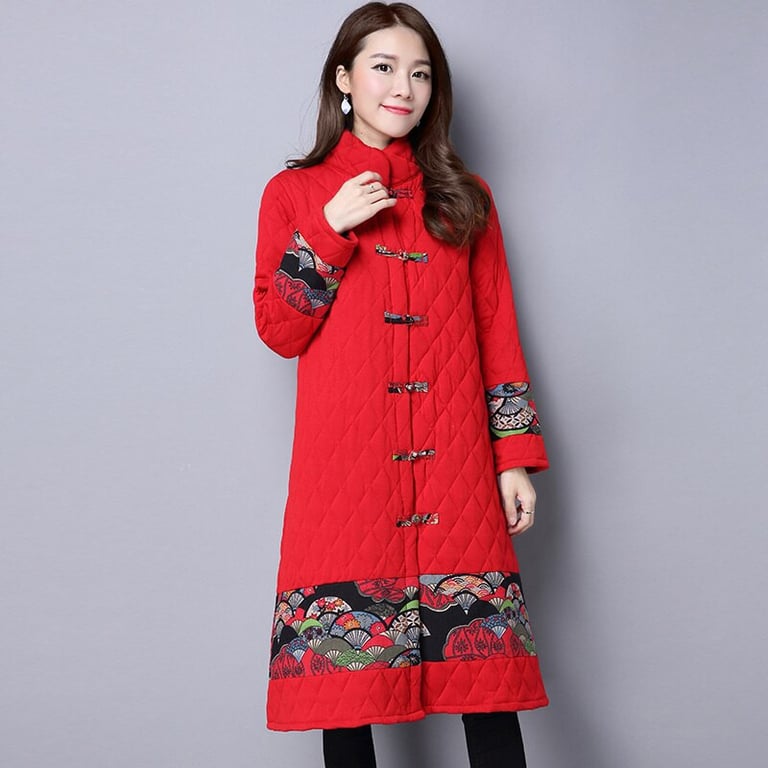 Comfortable quilted long coat for the winter season. The cut is very elegant, the print is subtle.