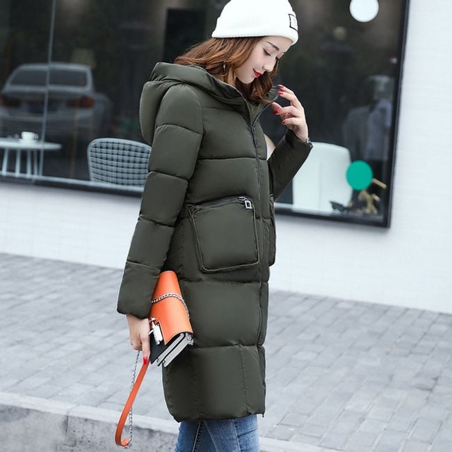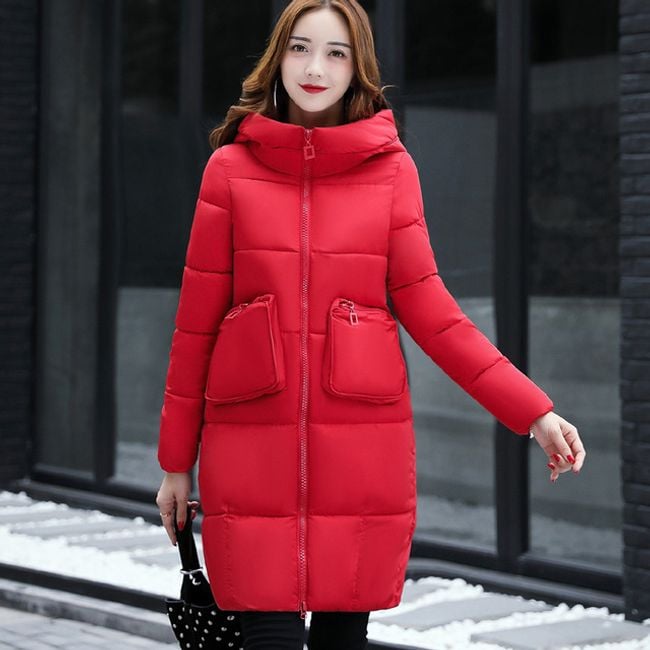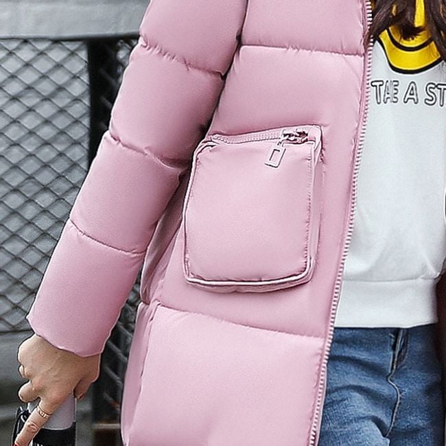 Women's long winter coat is designed like a padded jacket. Choose from 6 colour options.