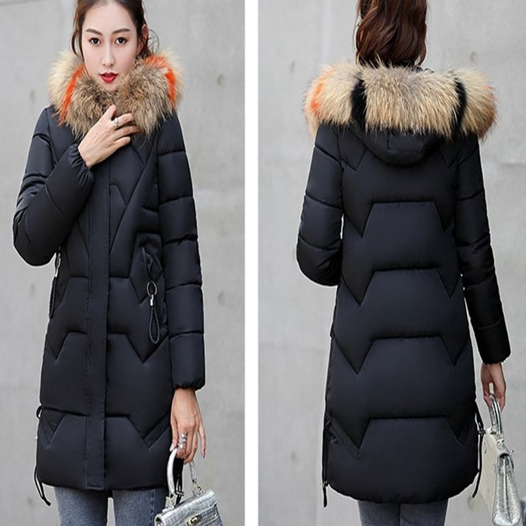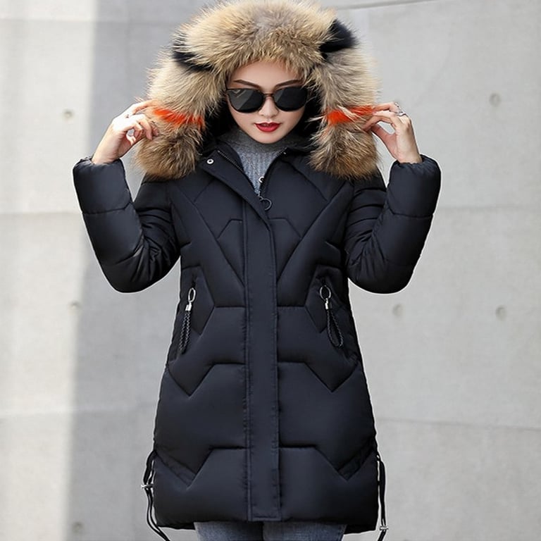 Women's winter coat with a coloured fur trim – available in multiple colour options.