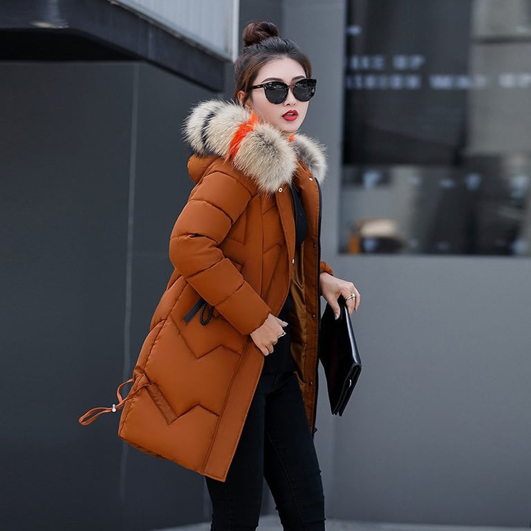 Women's winter coat with a coloured fur trim – available in multiple colour options.
