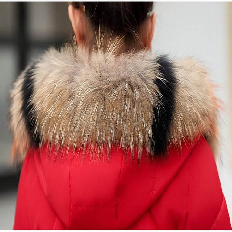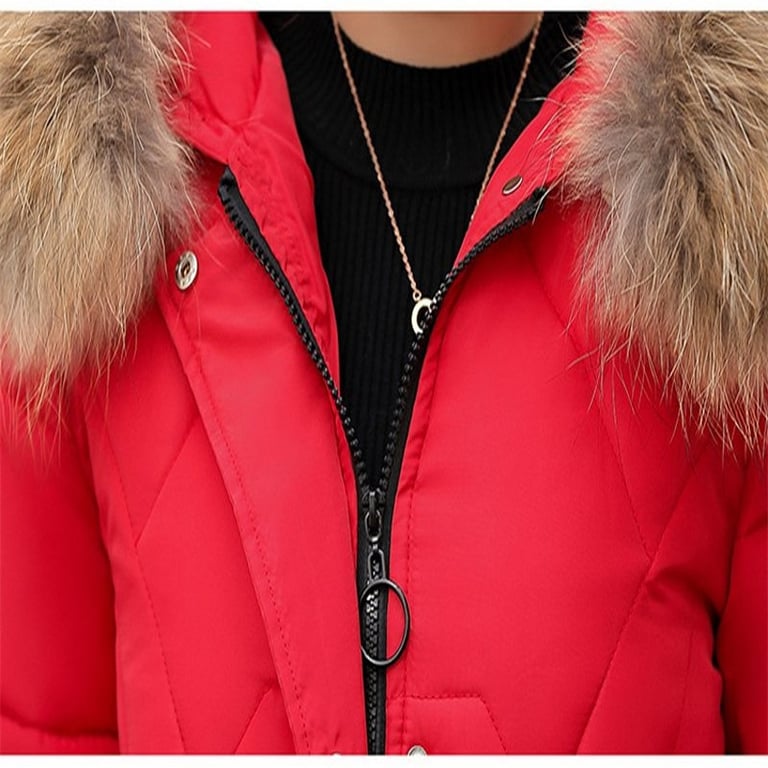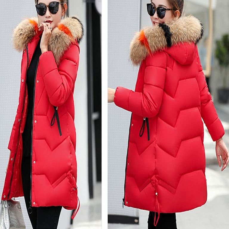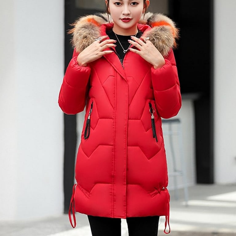 Women's winter coat with a coloured fur trim – available in multiple colour options.