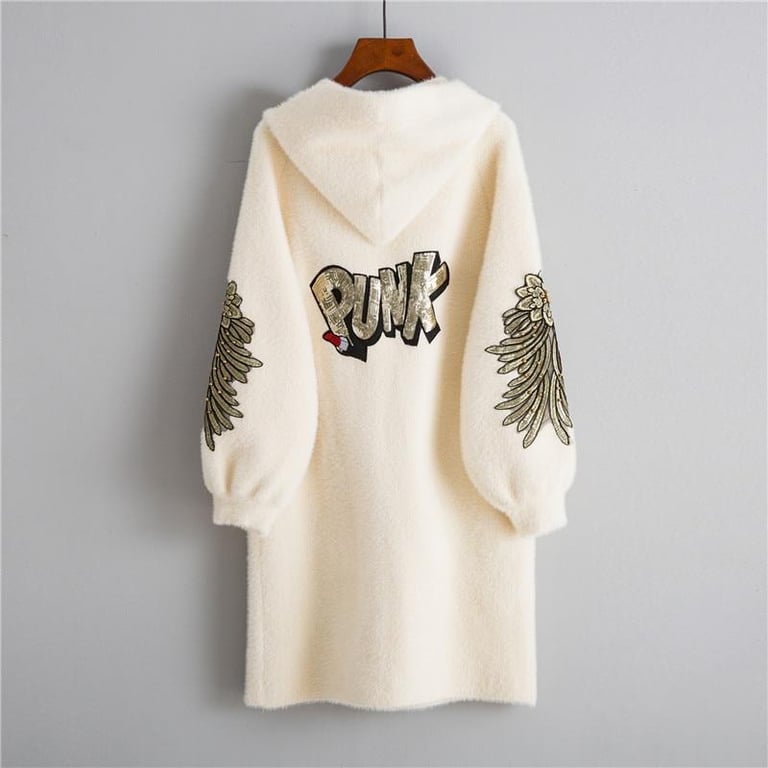 In this original punk jacket with a slogan, you will shine in any cold weather.