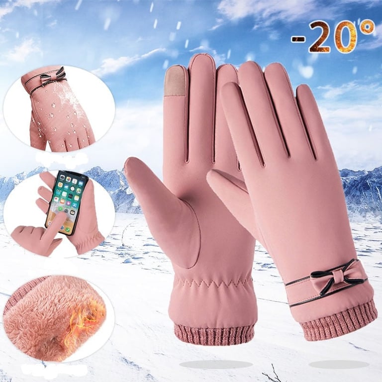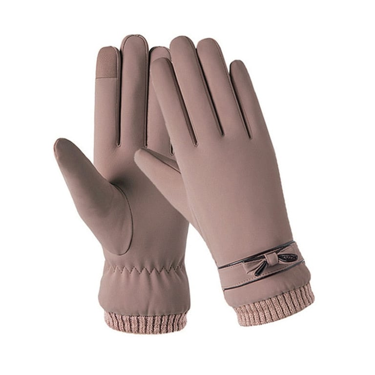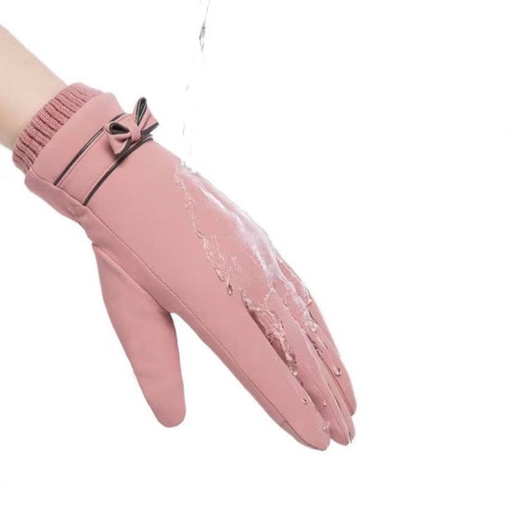 Women's winter gloves with a bow.