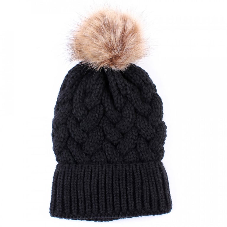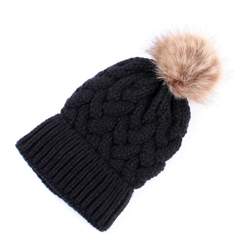 Women's knitted winter hat with a large fluffy pom-pom. Available in various colour options.