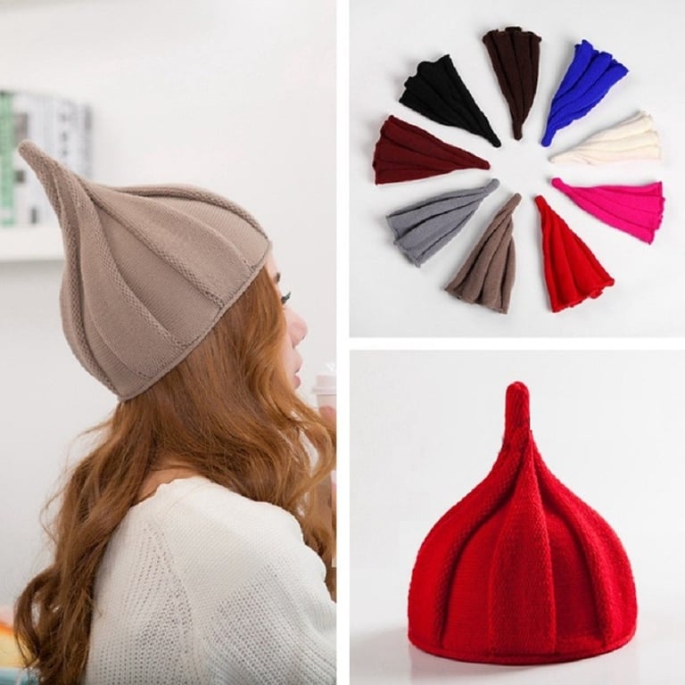 Original women's winter hat with a pointed top.