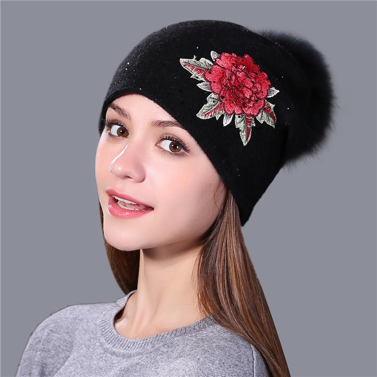 Women's Winter Hat with Fur Pom-Pom