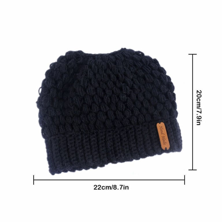 Women's winter hat with a hole for a ponytail