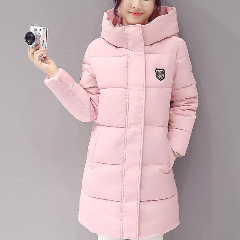 Long padded quilted winter coat with a hood and zip fastening. Enhanced with patches on the chest and sleeve. Available in six colour variations.