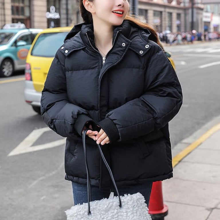 Women's winter jacket with quilting. The jacket has a hood and a high collar. Loose fit with side pockets and a zip fastening. Available in multiple colour options.