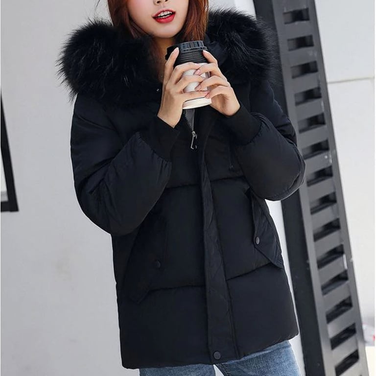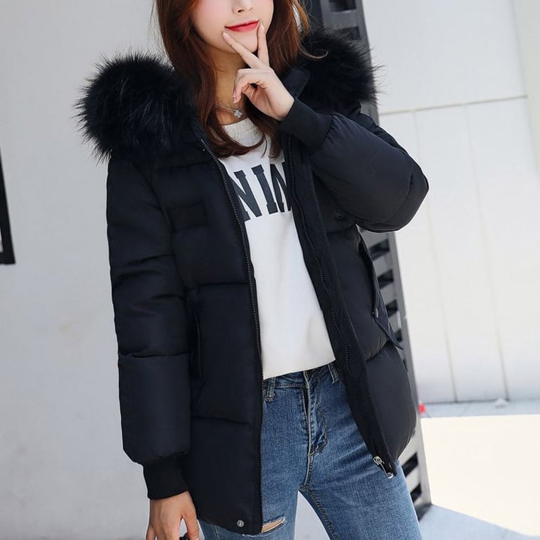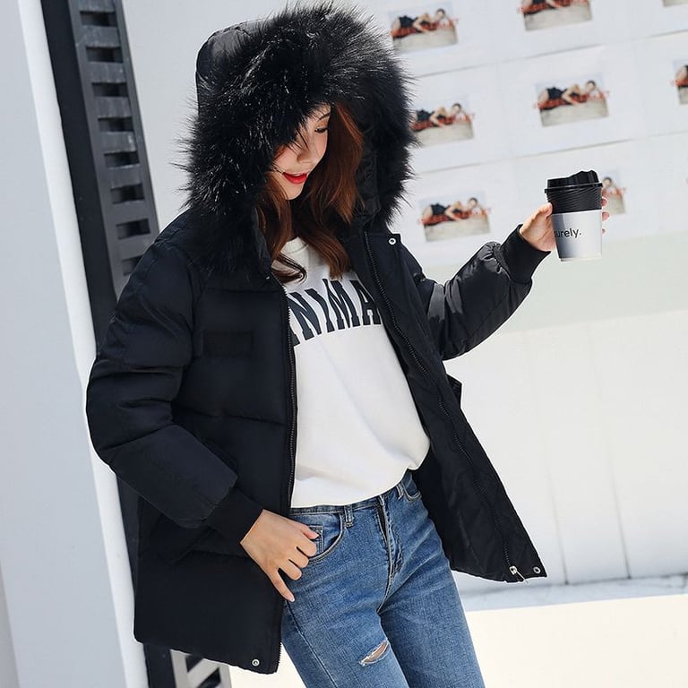 Women's winter jacket with quilting. The jacket features a hood with beautiful warm fur. Loose longer cut and side pockets. Zip fastening. Available in multiple colour options.