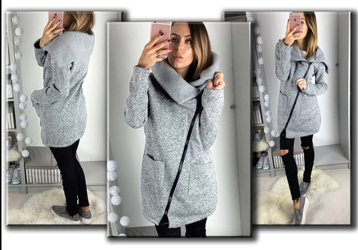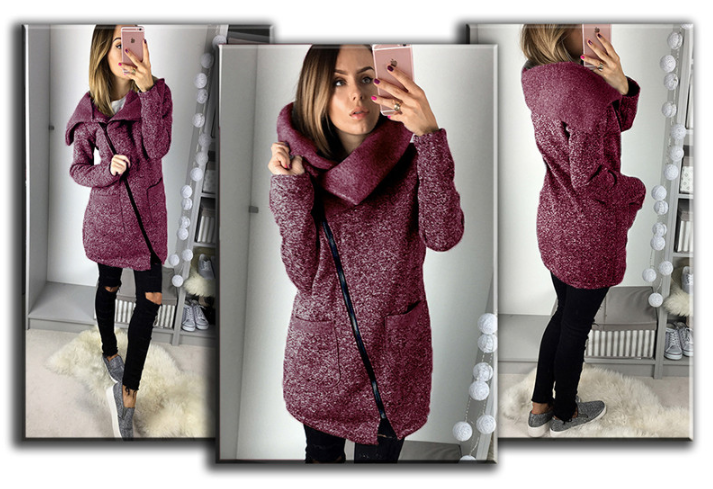 Stylish women's jacket with a diagonally inserted zip. It is adorned with a practical collar. It is ideal for the spring season.