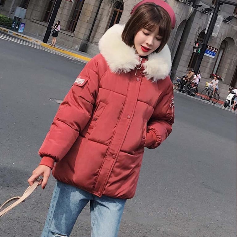 Women's winter jacket with furry collar Retiana – red