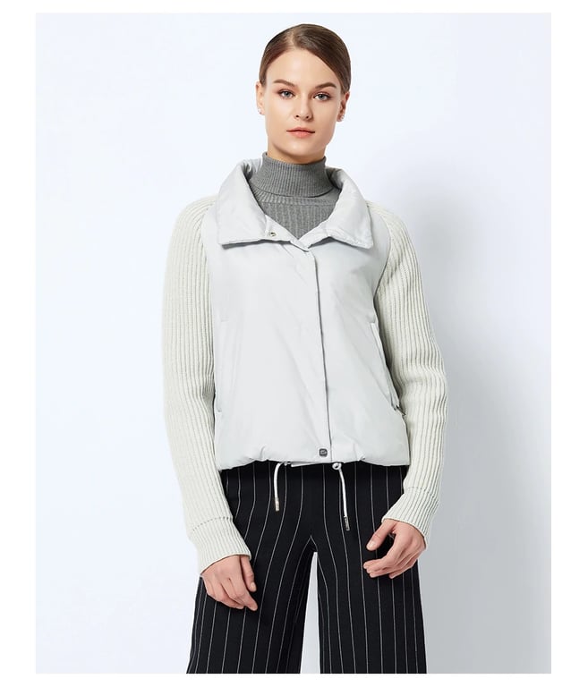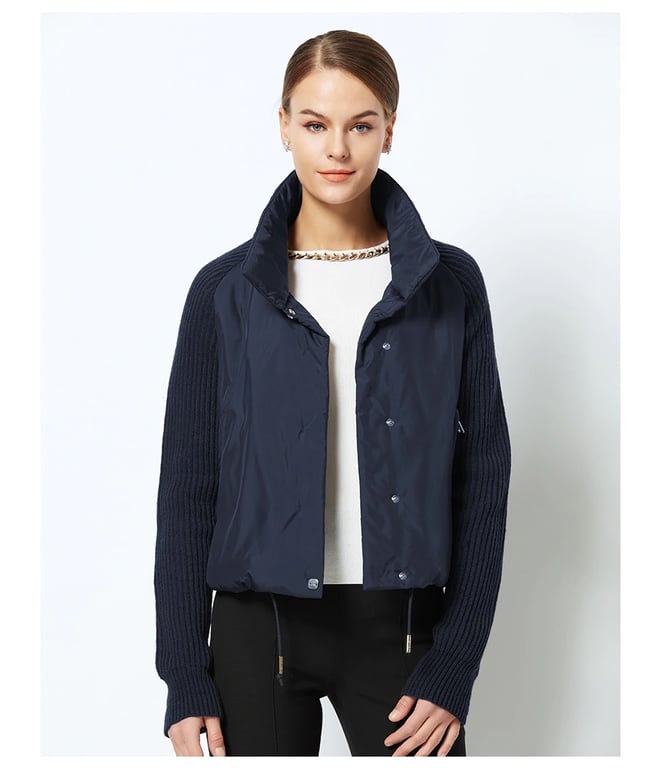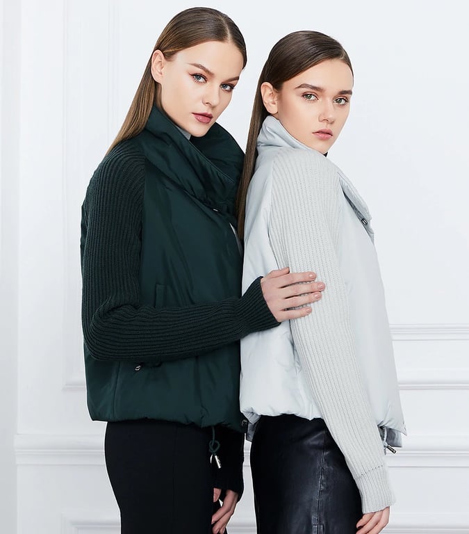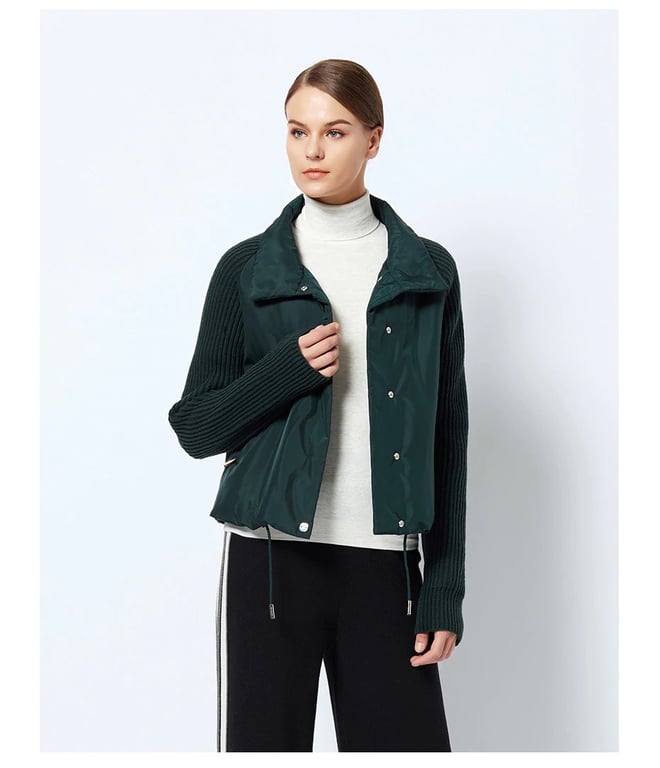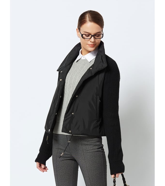 This women's fashion jacket with knitted sleeves is guaranteed to be useful in the cooler months and winter.