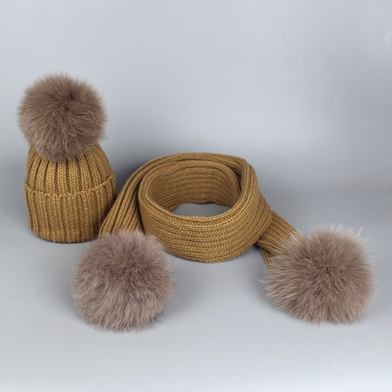 Quality winter set including a pom-pom hat and a scarf in the same design.