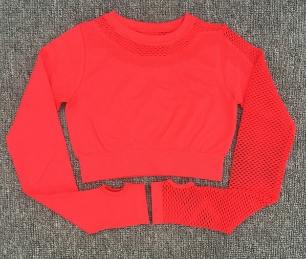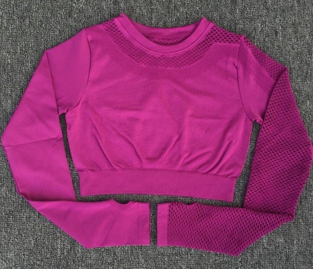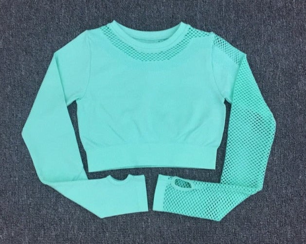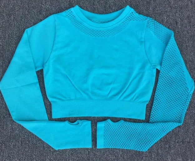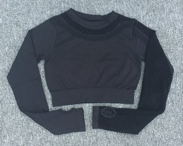 Elegant cropped top with long sleeves for exercise.