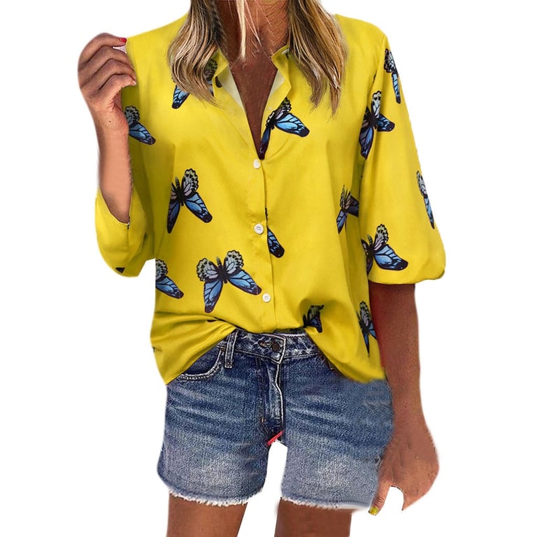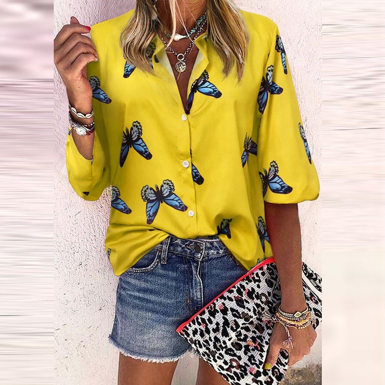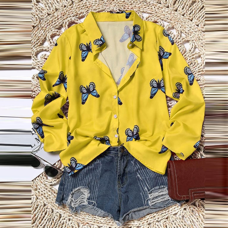 Women's Yellow Blouse with Butterflies