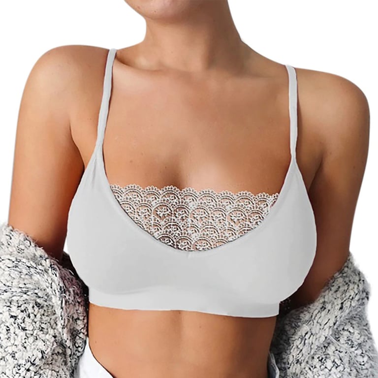 Comfortable yoga bra with lace across the chest. Choose from multiple sizes.
