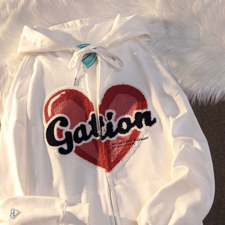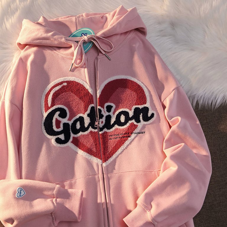 Women's Zip-Up Hoodie with Plush Heart – Gation