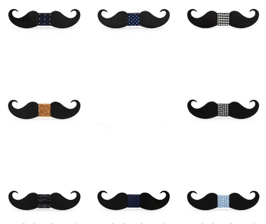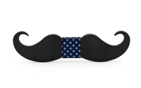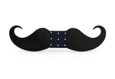 Wooden bow tie in the shape of a black moustache. Handmade.